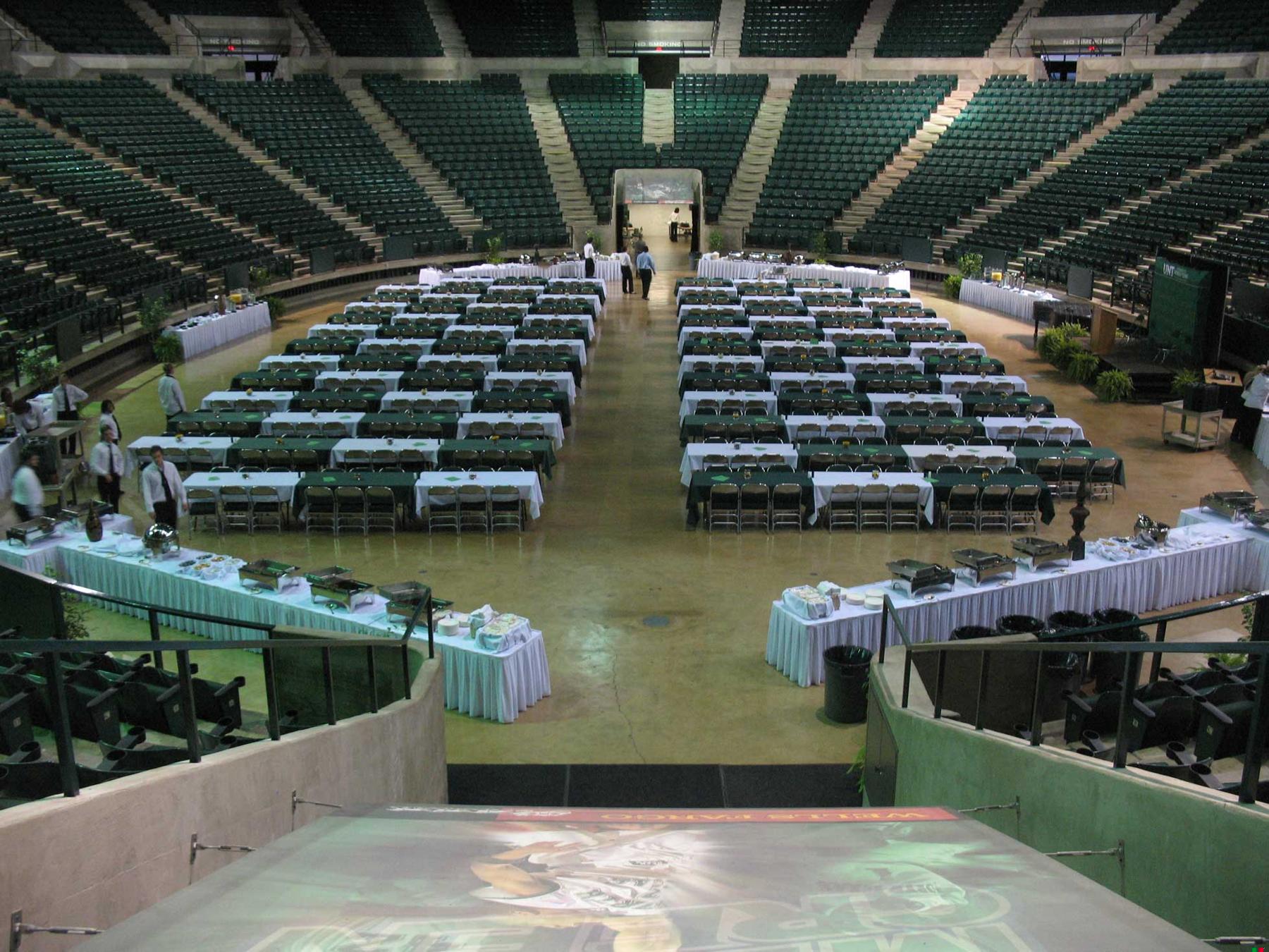 Due to the unique design of the building and the absence of structural pillars in the arena, every seat in the house has an unobstructed view of the arena floor. Floor space and seating can vary depending on event configurations.